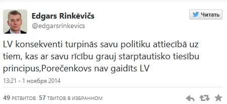 «Латвия последовательно будет продолжать свою политику в отношении тех, кто своим поступком подрывает принципы международного права. Пореченкова не ждут в Латвии», — написал глава латвийского МИД.