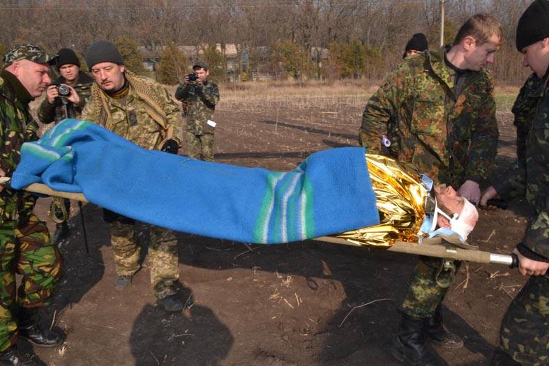 Вертолет выполнил посадку в международном аэропорту «Днепропетровск», откуда раненых военнослужащих каретами скорой помощи были доставлены в местный военный госпиталь.