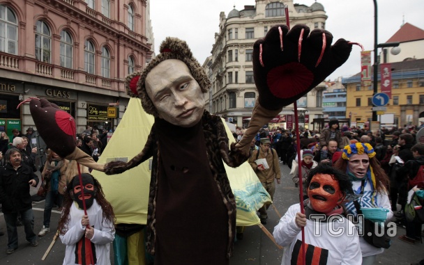 По улицам Праги провели «кровожадного медведя» Путина (ФОТО)