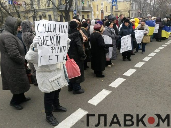 «Филатова под люстрацию» - гласит один из плакатов в руках митингующих.