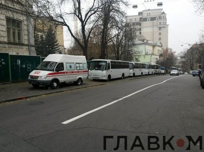При этом на ул. Лютеранской находится несколько автобусов с бойцами Нацгвардии, автозак и автомобили «скорой помощи».