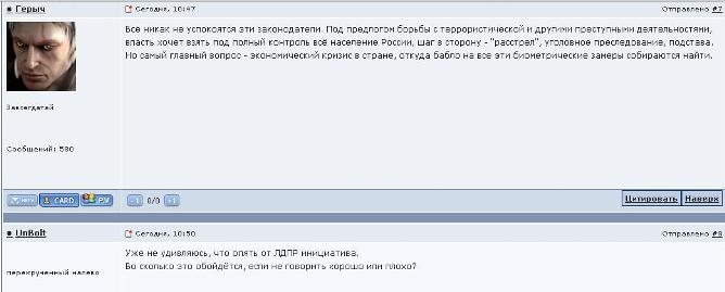 Россияне агрессивно восприняли новость о внесении в Госдуму законопроекта, обязывающего пройти биометрическую регистрацию. Законопроект вносит в Думу Роман Худяков (ЛДПР). Он утверждает, что концепция законопроекта уже получила негласную поддержку в правительстве, в Министерстве внутренних дел, Федеральной миграционной службе и других профильных органах власти.