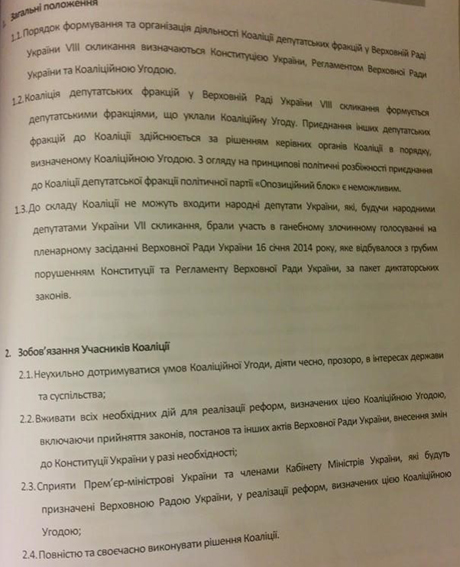 Как написано в документе, «учитывая принципиальные политические разногласия присоединение к коалиции депутатской фракции политической партии «Оппозиционный блок» невозможно».