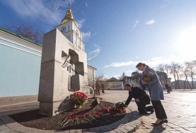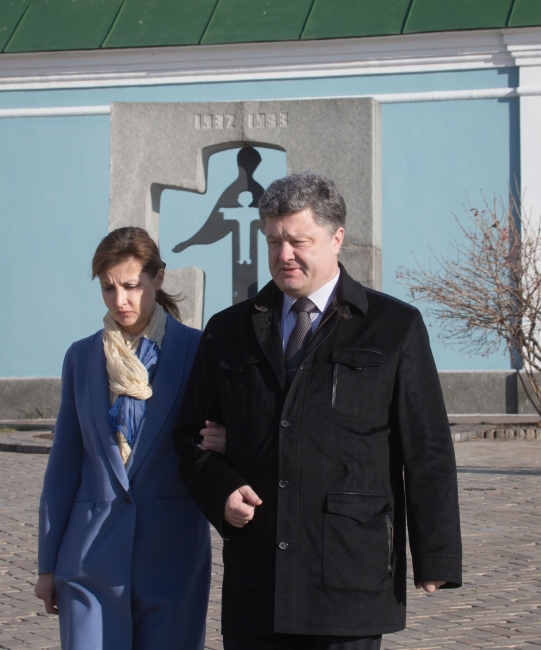 В День памяти жертв голодоморов Президент Петр Порошенко вместе с супругой возложили цветы к Памятному знаку жертвам Голодомора 1932-1933 годов возле Михайловского Златоверхого собора в Киеве.