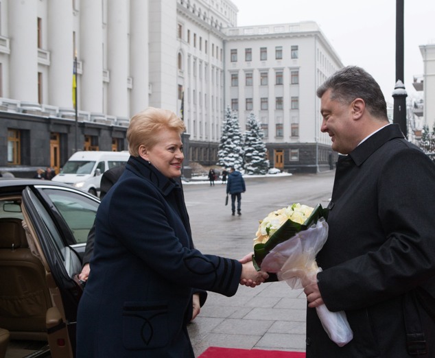 Президент Украины Петр Порошенко проводит встречу с Президентом Литовской Республики Далей Грибаускайте. Об этом Порошенко сообщил в Twitter.