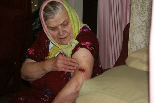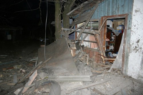 Перебито две газовые трубы — одна в районе 16 школы, вторая возле двухэтажных домов. Известно, что легкое осколочное ранение получила пенсионерка.