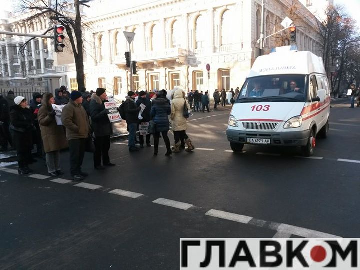 Вкладчики разорившихся банков перекрыли улицу Грушевского в Киеве (ФОТО)