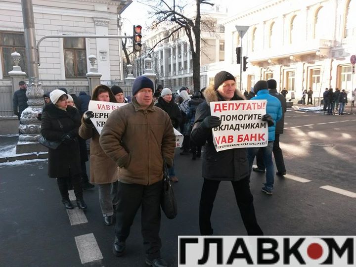 Вкладчики коммерческого банка, которые не могут забрать свои деньги, перекрыли улицу Михаила Грушевского с требованием отставки главы Национального Банка Украины Валерии Гонтаревой.