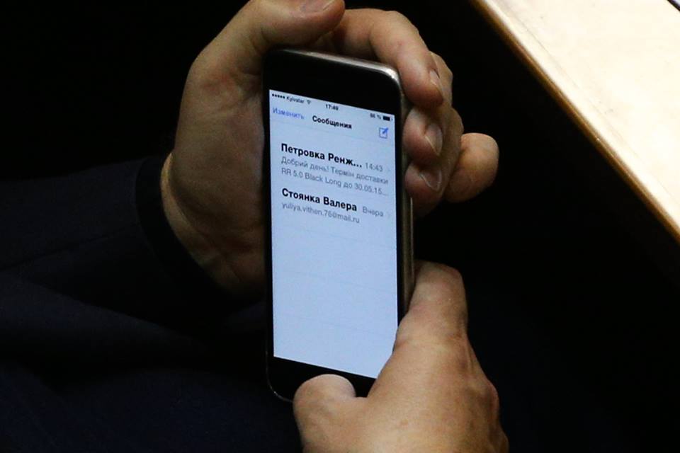 «Во время вчерашнего пленарного заседания в объектив попал экран мобильного народного депутата группы «Воля народа» Виктора Розвадовского. Получив уведомление о доставке с автосалона Range Rover 5.0 Black Long, депутат начал читать о новых мощности дизельных Range Rover», - говорится в сообщении.