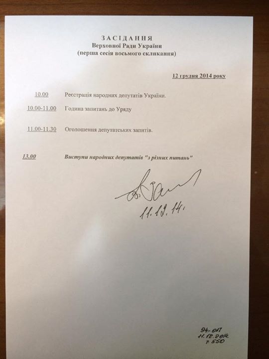 «Повестка дня заседания парламента. Никакого голосования не запланировано. Напоминаю, Рада работает уже две недели ...», - написал депутат.