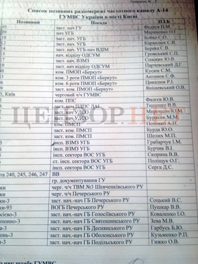 Журналист опубликовал списки силовиков, которые могли быть причастны к нападениями на Евромайдан (ДОКУМЕНТ)