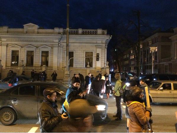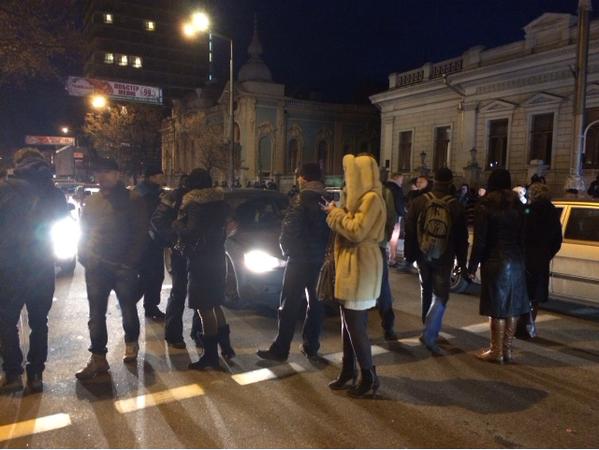 Также митингующие ходят по ул. Грушевского, препятствуя проезду транспорта. Ввиду этого ГАИ перекрыло движение по этой улице на участке от Крепостного переулка до ул. Садовой.
