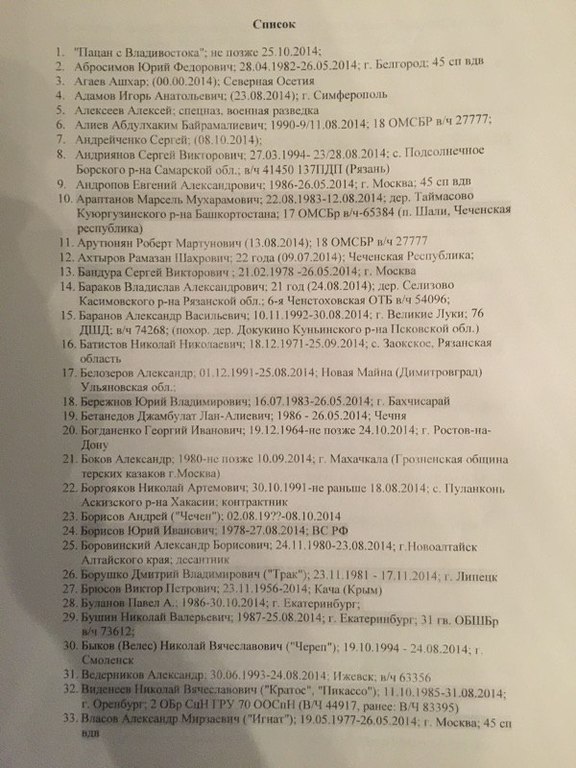 Общестенная организация «Открытая Россия» опубликовала список российских солдат, офицеров и добровольцев, погибших на востоке Украины за время вооруженного конфликта с мая по ноябрь 2014 года.