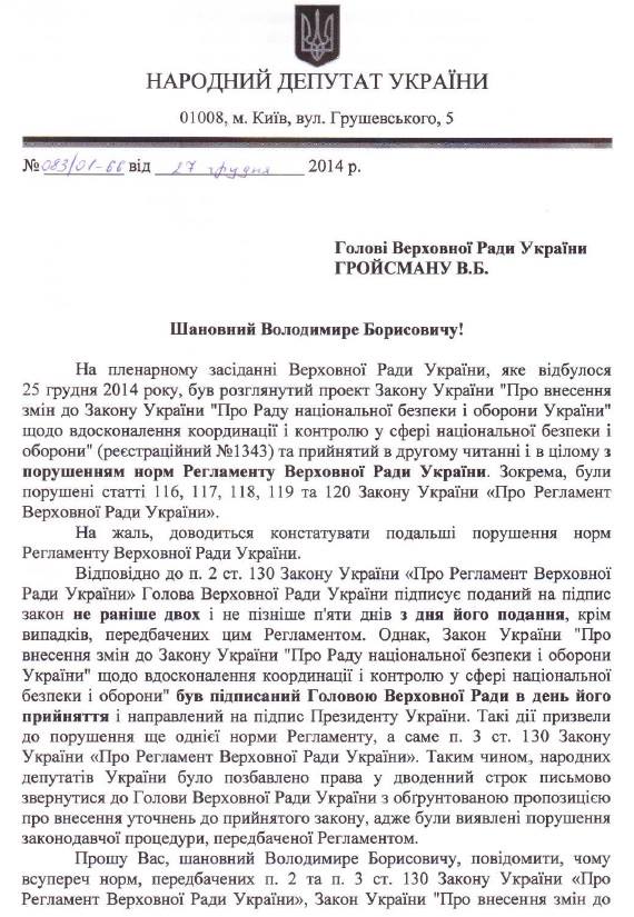 Депутат Лещенко: Закон о расширении полномочий СНБО опротестуют в суде (ФОТО)