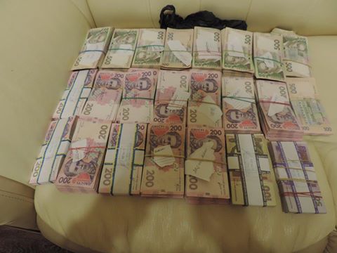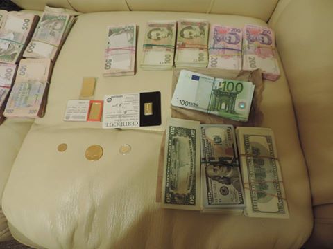 У задержанного в портфеле изъято наличностью 18 тыс. долларов США, а во время обыска в квартире – почти 900 тыс. гривен, 20 тыс. долларов США, 6 тыс. евро. В целом изъято свыше 1,5 млн гривен.