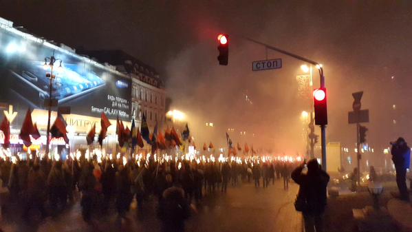 В Киеве проходит факельное шествие ко дню рождения руководителя Организации украинских националистов (революционной) Степана Бандеры.