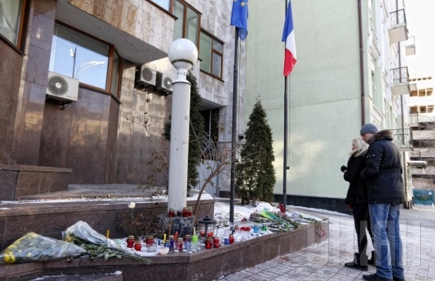 В Киеве возле посольства Франции почтили погибших во время теракта в Париже (Фото)