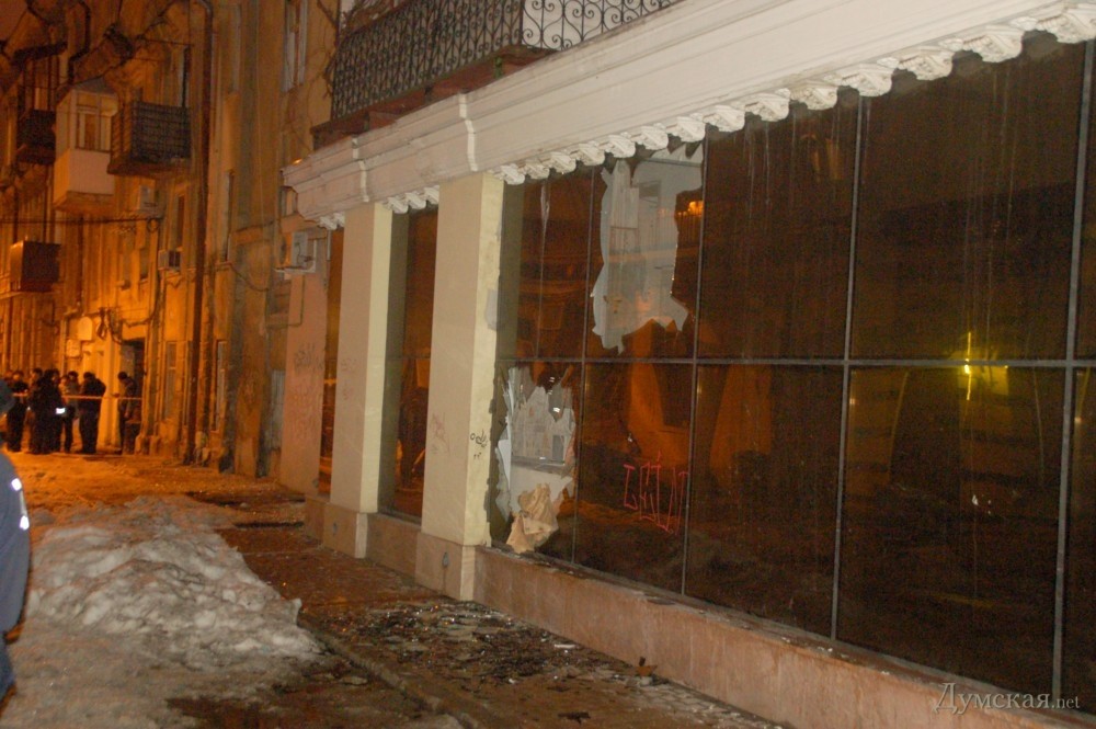 В результате сегодняшнего взрыва у отделения «Диамантбанка» в переулке Нечипуренко (Троицкая, 54) были повреждены окна двух домов, а также витрина расположенного напротив магазина.