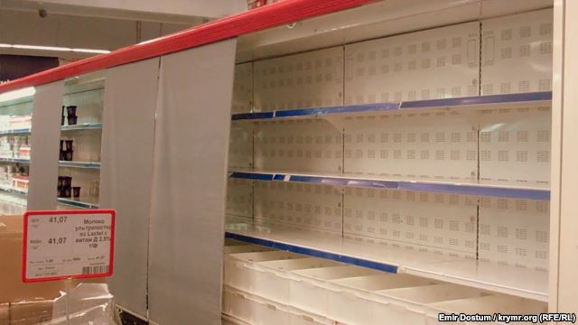 Пустые полки в супермаркетах Симферополя прикрывают занавесками (ФОТО)