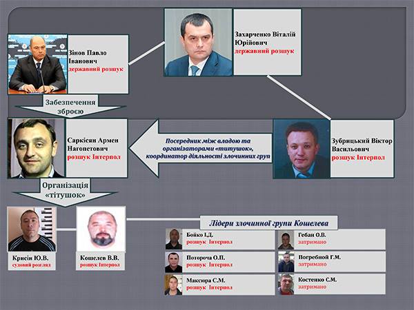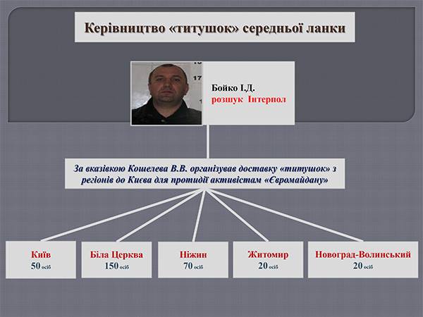 Глава МВД Арсен Аваков обнародовал часть результатов расследования по делу активистов Евромайдана. В частности МВД определило структуру организации, координации и использования отрядов «титушек».