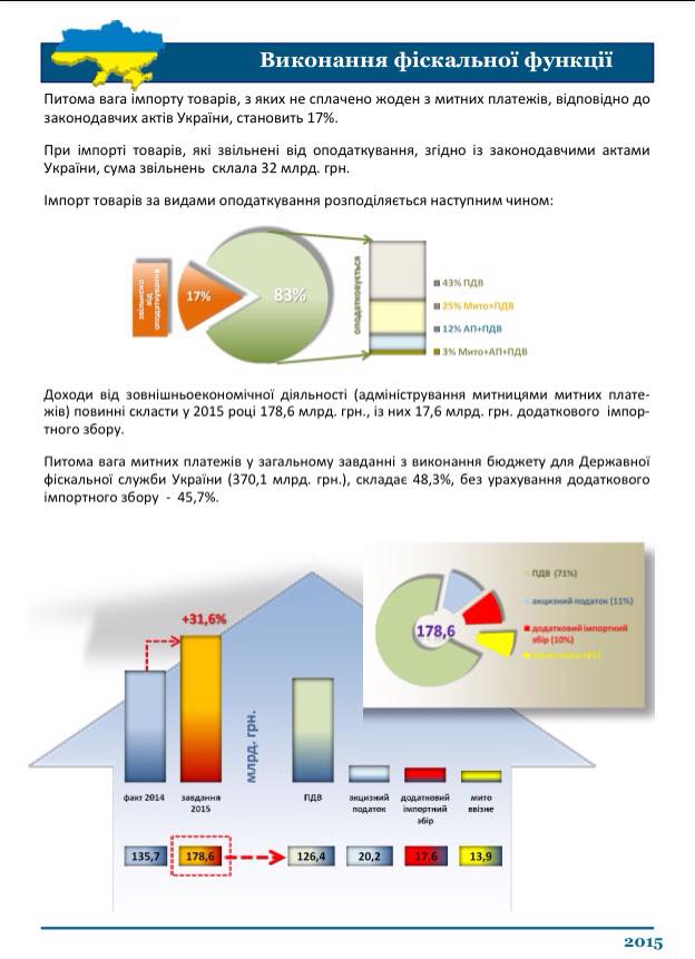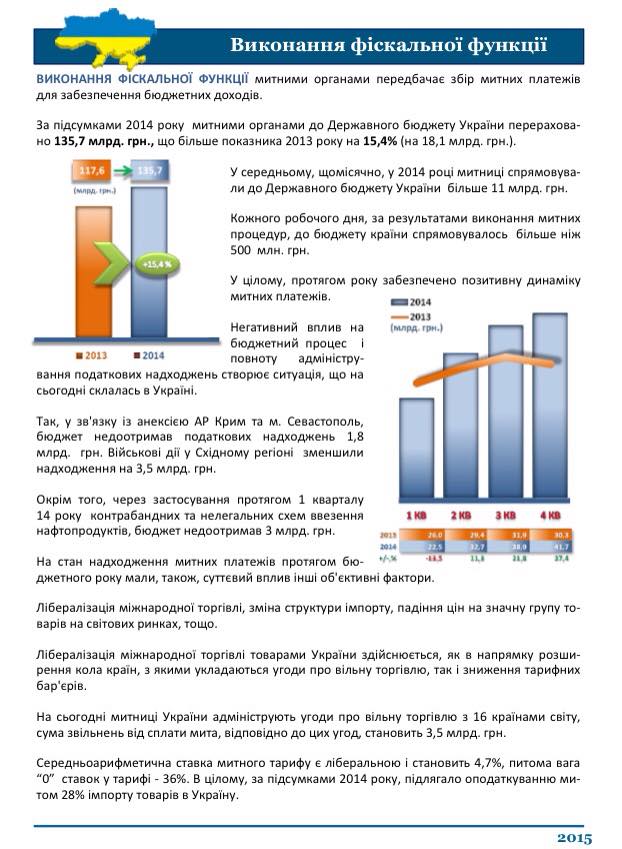 По итогам 2014 таможенными органами в государственный бюджет Украины было перечислено 135.7 млрд гривен.