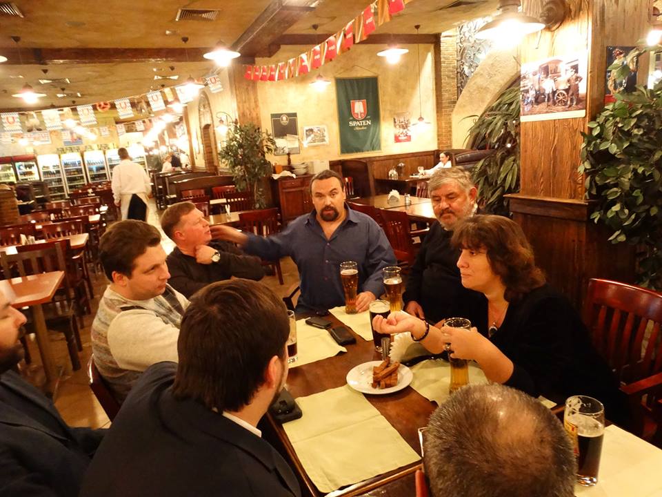 Фотографии с отдыха в московском пивном ресторане "Бургомистр" Чаленко выложил на своей страничке в соцсети Facebook. "Сегодня наша тусовка - от коммунистов до белогвардейцев - заслушала доклад Дениса Пушилина, вернувшегося из Минска", - написал журналист.