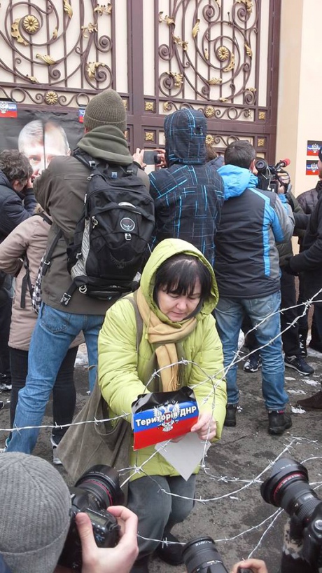 Во время акции активисты установили перед зданием колючую проволоку и табличку с надписью «ДНР», имея в виду, что дом Ахметова, которого подозревают в помощи российскому агрессору, - на территории сепаратистов.