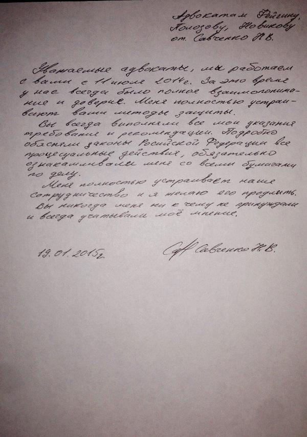 Савченко написала письмо в защиту адвокатов (ФОТО)