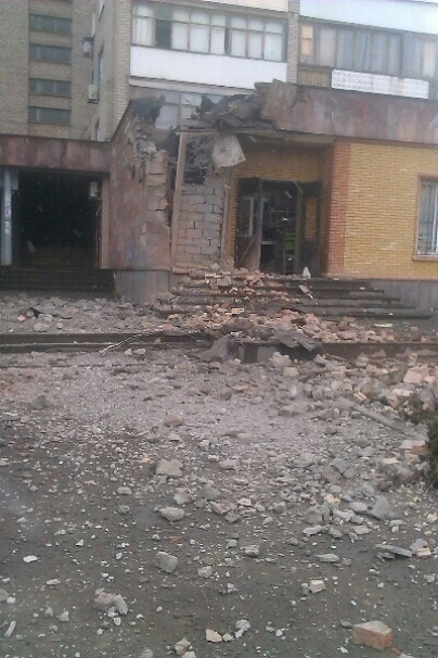 Обстрел производился из реактивных систем залпового огня «Град». Попадание снарядов пришлись в угол здания хозяйственного магазина, соседние дома получили осколочные повреждения. Еще один снаряд попал в подъезд жилого дома. Пострадала женщина, которая находилась на тот момент в квартире.