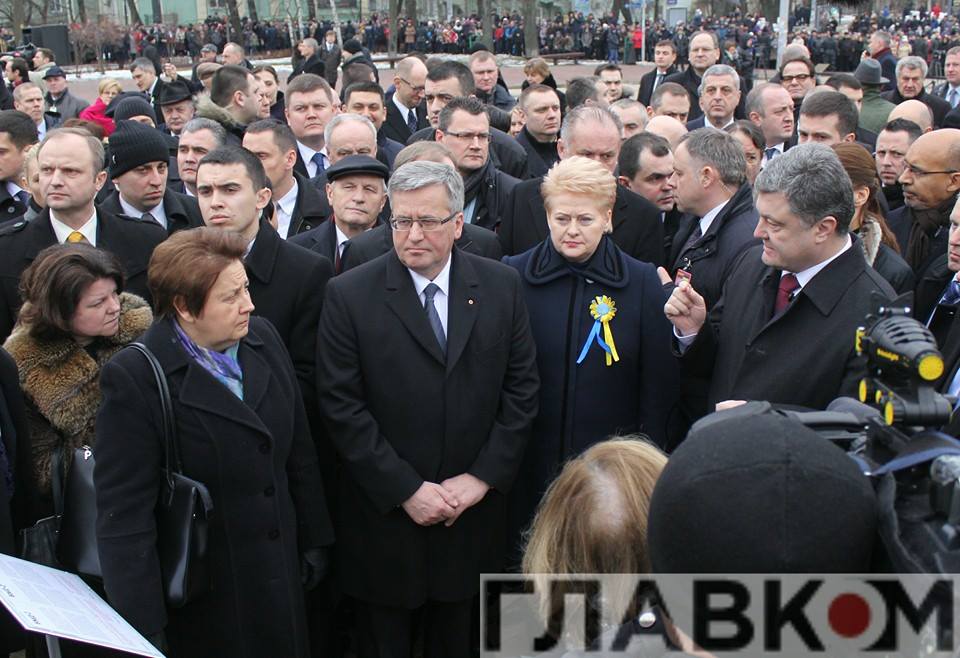 В шествии принимают участие Президент Украины Петр Порошенко, а также глава Европейского совета Дональд Туск и Президент Литвы Даля Грибаускайте.