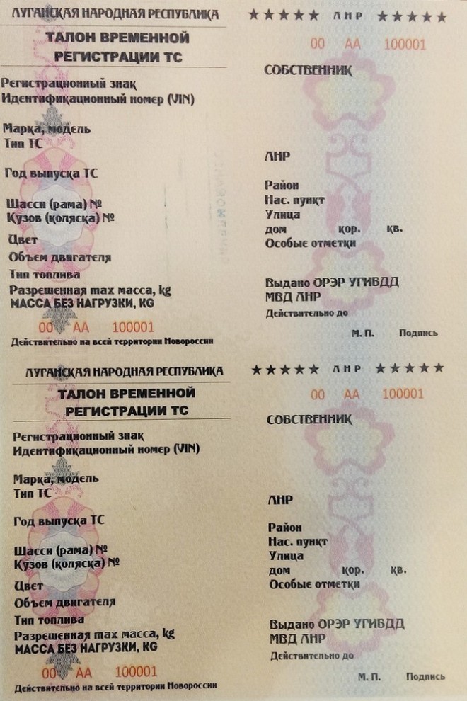 В самопровозглашенной «ЛНР» показали образец временного водительского удостоверения и техпаспорта.