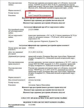 «Группой помещений №3, №17 и №18 владеет «Киев-Арт» Марины Пелых. Фирме удалось расширить свои владения на 150 кв. м – до 506 кв. м. Третей группой помещений №4 площадью 534 квадратных метров с июля 2014 года владеет Геннадий Ильин, согласно договору дарения. Вместе с Ильиным другими двумя третями группы помещений №4 владеют Илона Ярема и Вячеслав Даниленко, – дочь и сын бывших генпрокурора и его зама», - говорится в расследовании.