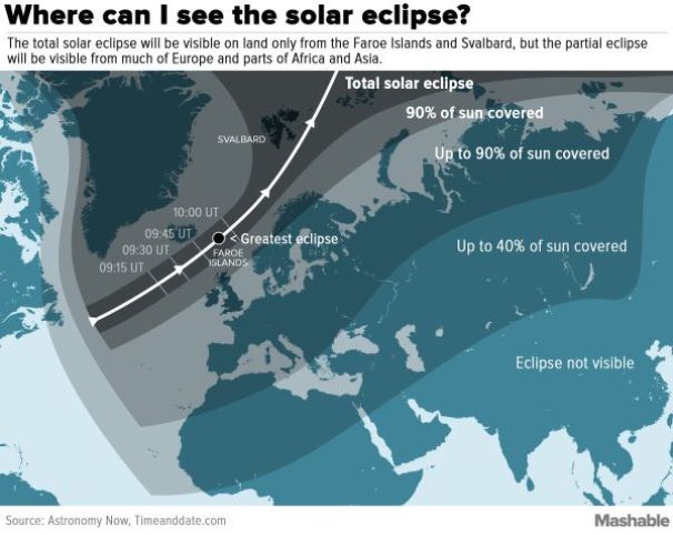 Как пишет Mashable, полная его тень пройдет над Фарерскими островами и архипелагом Шпицберген.