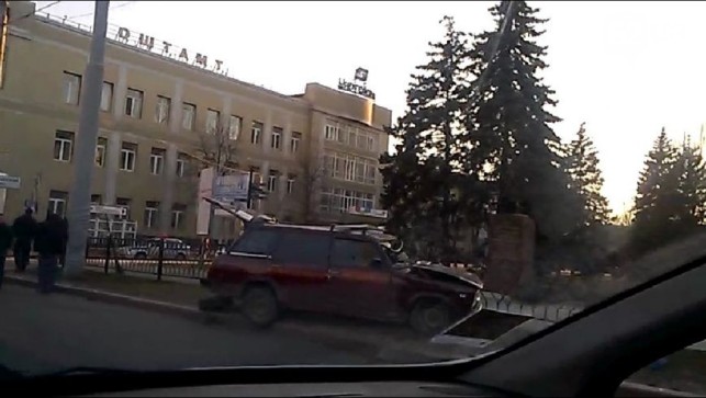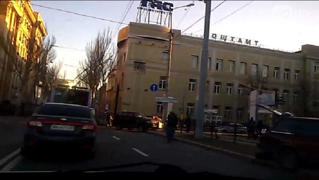 Во вторник, 24 марта, около 15:55 в Донецке возле Главпочтамта произошла авария – «ДНРовский» джип Range Rove въехал в «Жигули» 2104 с тремя гражданскими.