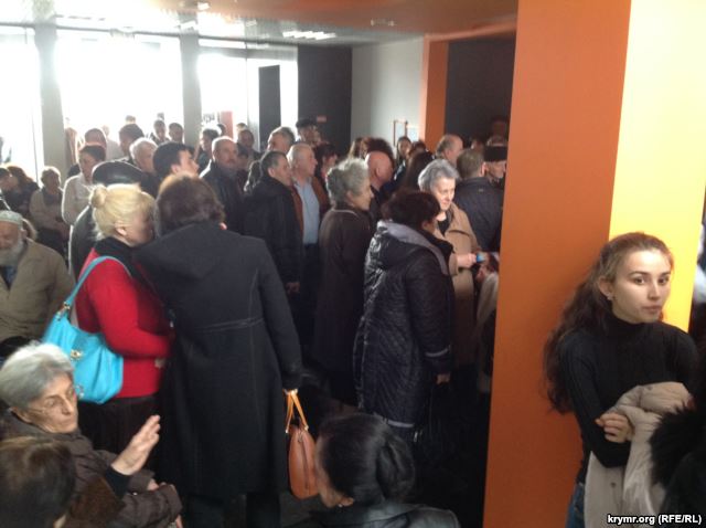 Сегодня, 31 марта, около сотни крымских татар пришли на телеканал ATR в Симферополе, чтобы поддержать национальный телеканал, где во вторник проходит день открытых дверей.