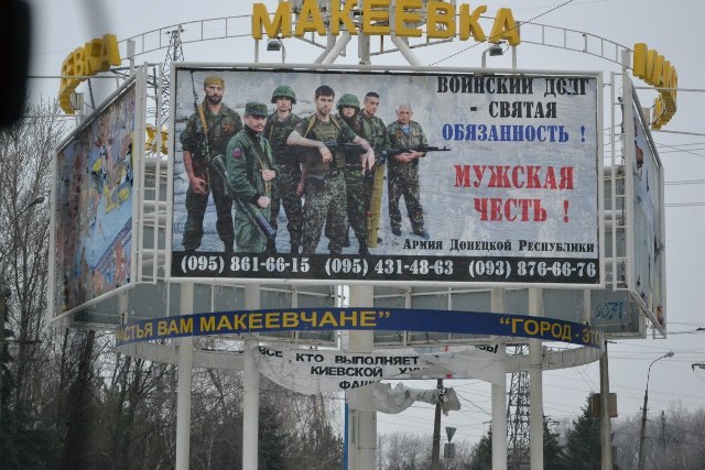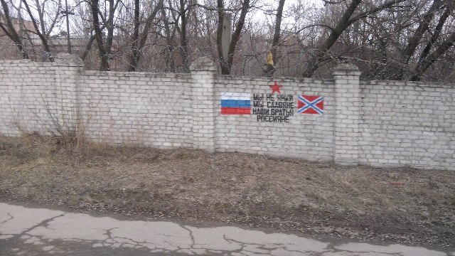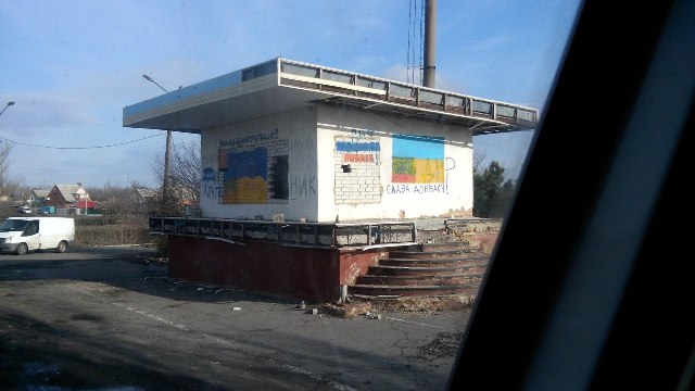 По бокам дорог разбитые кафе, закрытые заправки, разрушенные снарядами дома, сожженная техника. И наскальная живопись сепаратистов на заборах и остановках.
