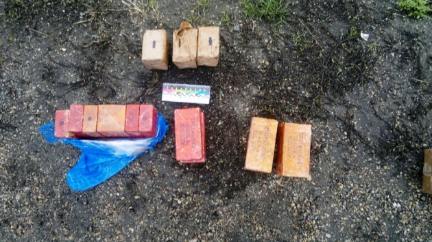 «В дальнейшем из автомобиля изъят арсенал взрывчатки и боеприпасов: 2,6 кг тротила, 8 гранат Ф-1, 2 гранаты РГД-5, 90 патронов калибра 5,45 мм, 38 капсюлей-детонаторов, 16 запалов к гранатам, 4 армейских взрывпакета, 4 электродетонатора, ручная дымовая граната РДГ-24, сигнальный патрон РСП-40 и сигнальный патрон армейский», - говорится в сообщении.
