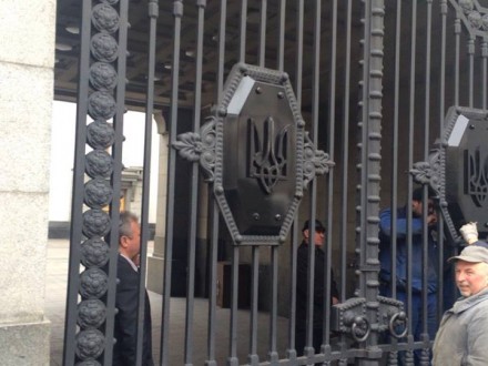 На воротах Верховной Рады заменили советский герб на герб Украины.