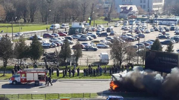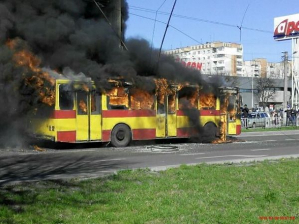 Во Львове горел троллейбус с пассажирами (ФОТО)