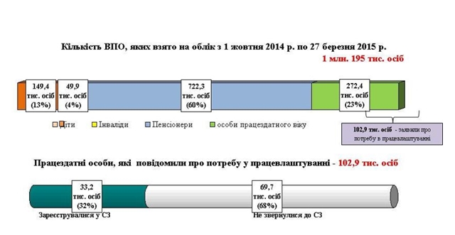 Директор Госслужбы занятости заявил, что клиентами центра занятости, по данным ведомства стали около 103 тысячи перемещенных лиц. Именно они официально заявили, что нуждаются в трудоустройстве.