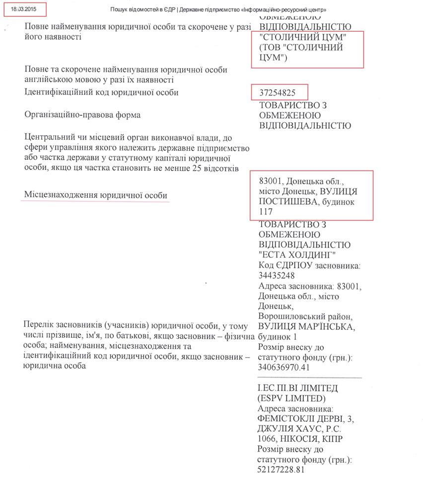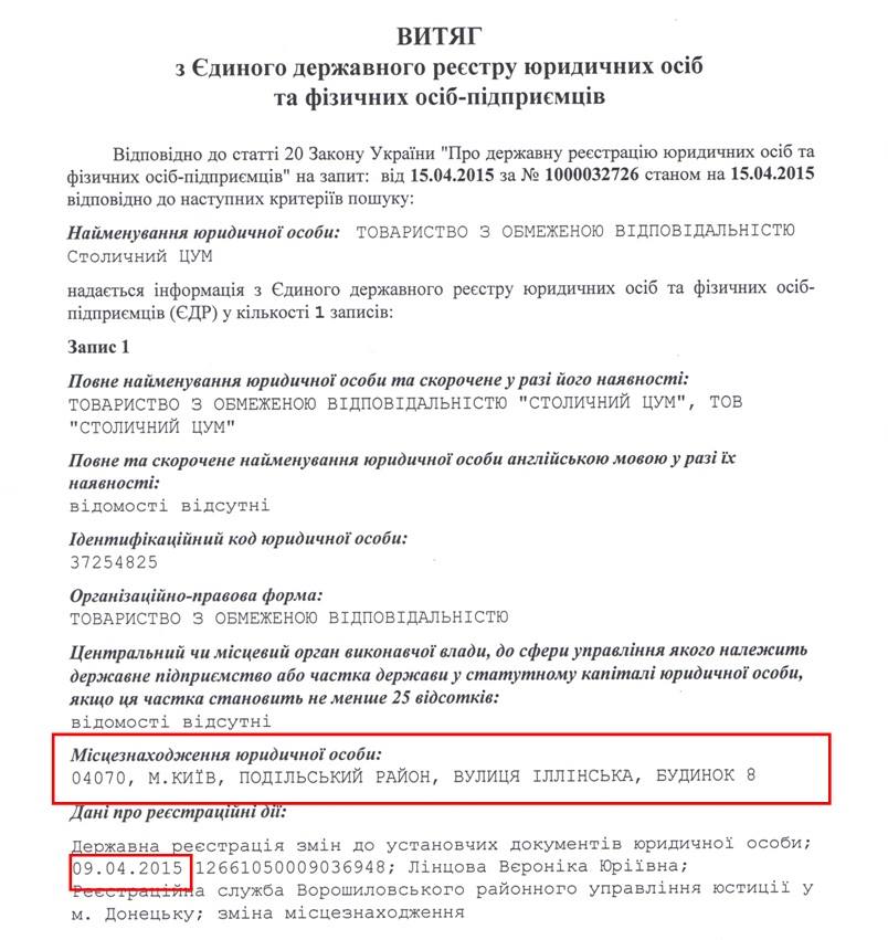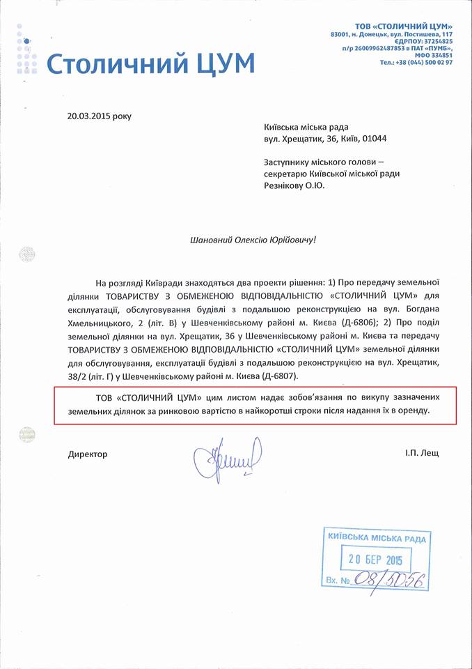 «ООО «Столичный ЦУМ», которое осуществляет реконструкцию ЦУМа, теперь платить налоги в столичный бюджет, ведь в апреле перерегистрировало местоположения из Донецка на Киев. В конце марта эта компания предоставила письменное обязательство в горсовет по выкупу соответствующих земельных участков по рыночной цене», - сообщил Павлик.