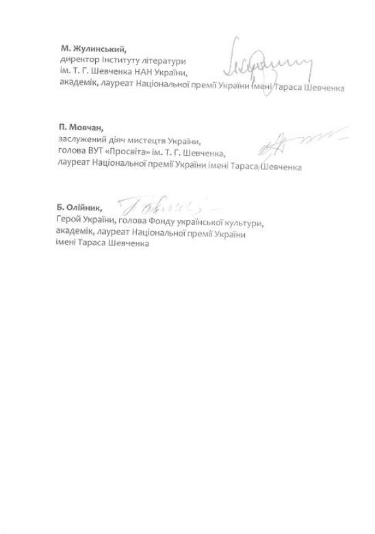 Лауреаты Национальной премии Украины имени Тараса Шевченко Иван Дзюба, Иван Драч, Николай Жулинский, Павел Мовчан и Борис Олийнык вторично обратились к Президенту Украины Петру Порошенко с письмом, в котором выражают возмущение непрекращающимся произволом ДУСи в отношении Культурного центра Украины в Москве.