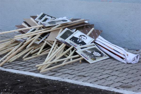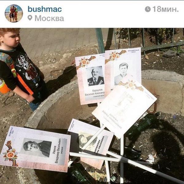 Публикуя фотографии сброшенных в кучу транспарантов с портретами ветеранов, блогеры задаются вопросом, стали бы люди после окончания акции выбрасывать портреты своих погибших родственников.