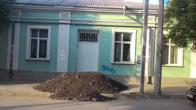 В оккупированном Крыму перед дверью здания крымских татар высыпали машину асфальта (ФОТО)