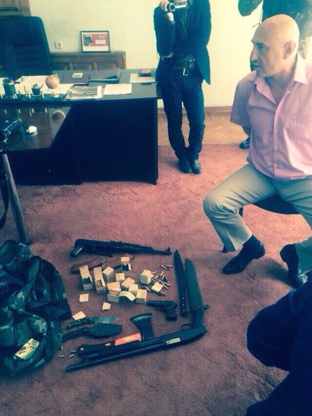 Известно, что Степанюка задержали в служебном кабинете, при передачи разрешительных документов. Персональная охрана чиновника пыталась оказать сопротивление оперативникам, но была локализована. Непосредственно в кабинете обнаружен целый арсенал оружия.