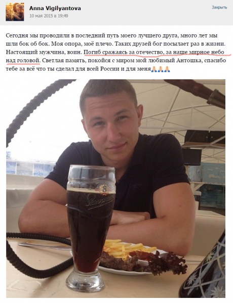 Изучив профиль Антона, блогеры выяснили то, что он точно служил в части 54607, что 24 октября 2014 года он находился в Ростове-на-Дону. Также в процессе изучения профиля, волонтеры установили, что вместе с Антоном погибли Мамаюсупов и Кардаполов. При этом в комментариях к постам об их смерти запостили тематическую песню «Защитникам юго-востока». Именно так в России называют украинский Донбасс.