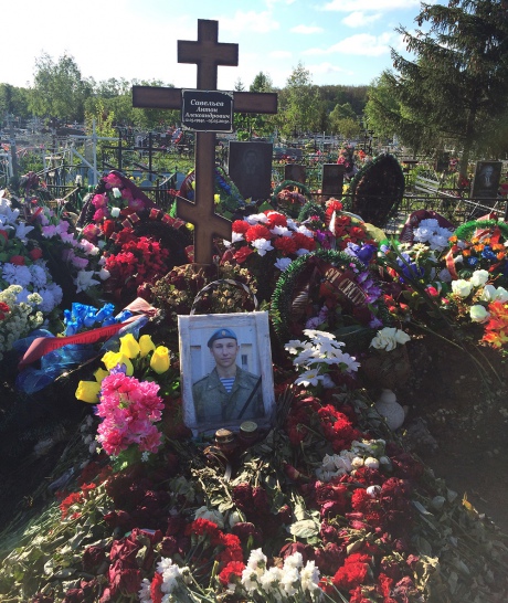 Блогеры также нашли две могилы российских военных, где и указан один и тот же день смерти. На могилах Савельева и Мамаюсупова были венки «Защитнику Отечестве от Министерства обороны», у Мамаюсупова еще и венок с ленточкой, на которой надпись «От командования части».