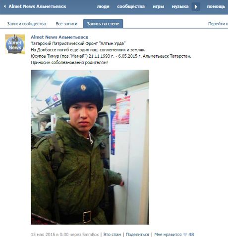 Кроме того в социальных сетях прямо утверждалось, что Мамаюсупов погиб на Донбассе.