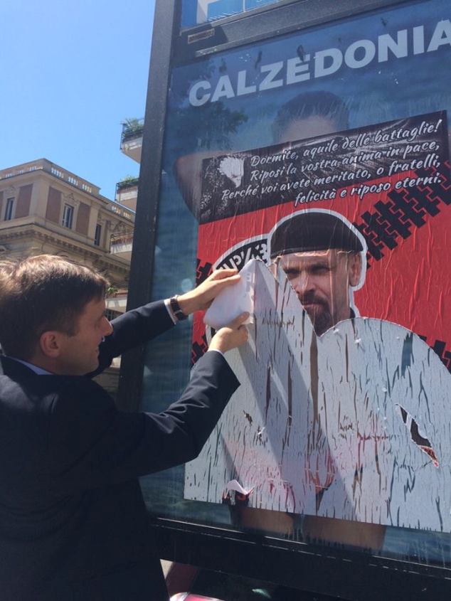В ночь с четверга на пятницу, 29 мая, в столице Италии неизвестные развесили плакаты с изображением убитого недавно на Востоке Украины пророссийского террориста Мозгового.