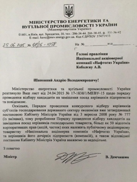 По информации Українська правда, руководство «Нафтогаза» обратилось к главе Минэнерго с просьбой инициировать изменение правил избрания руководителей госпредприятий, чтобы можно было успеть провести конкурс до 22 июля.